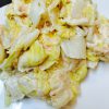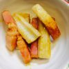同じフライパンににんにくの薄切りを入れて中火で炒めます。