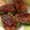 茄子元の組み合わせに戻して、ラップで包みます。片面2分づつ電子レンジでチンします。