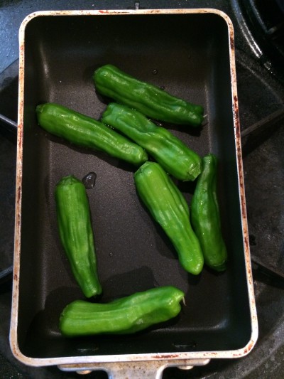 油をしいたフライパンでしし唐を炒めます。