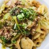 - 豚肉ときのこのクリームあんかけ焼きそば