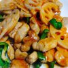 塩コショウで下味をつけた鶏肉を両面焼き色をつけ、先ほどの玉ねぎと◎を入れて蓋をして中火で煮ます。