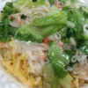 ご飯がぱらっとなったらオイスター、ウスターを順番に入れて炒め、おたふくソースを入れて味を見て最後に塩コショウで整えたら完成です。お好みでマヨネーズと青のりをかけてください。