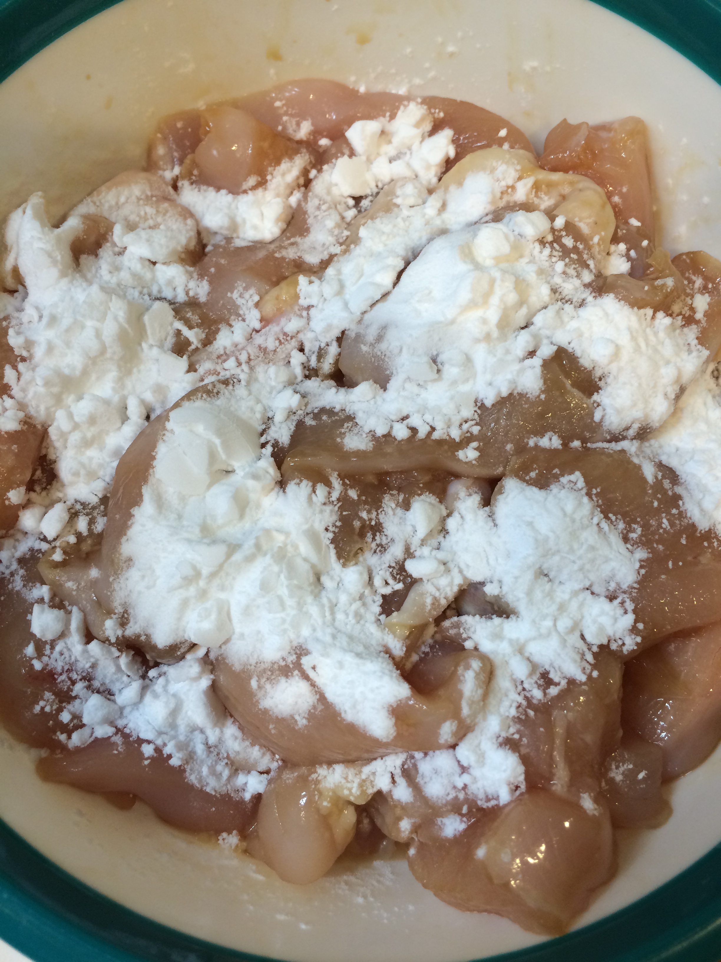 30分から1時間置いた鶏肉に片栗粉をまぶしておきます。