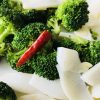 ブロッコリーは少量の水と塩ひとつまみをしてラップにかけ、700wで1分チンしておきます