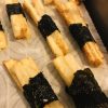 180℃のオーブンに1時間→裏返して1時間。後はトングなどで掴んで柔らかくなっていれば竹串芯までスーッと通れば完成です