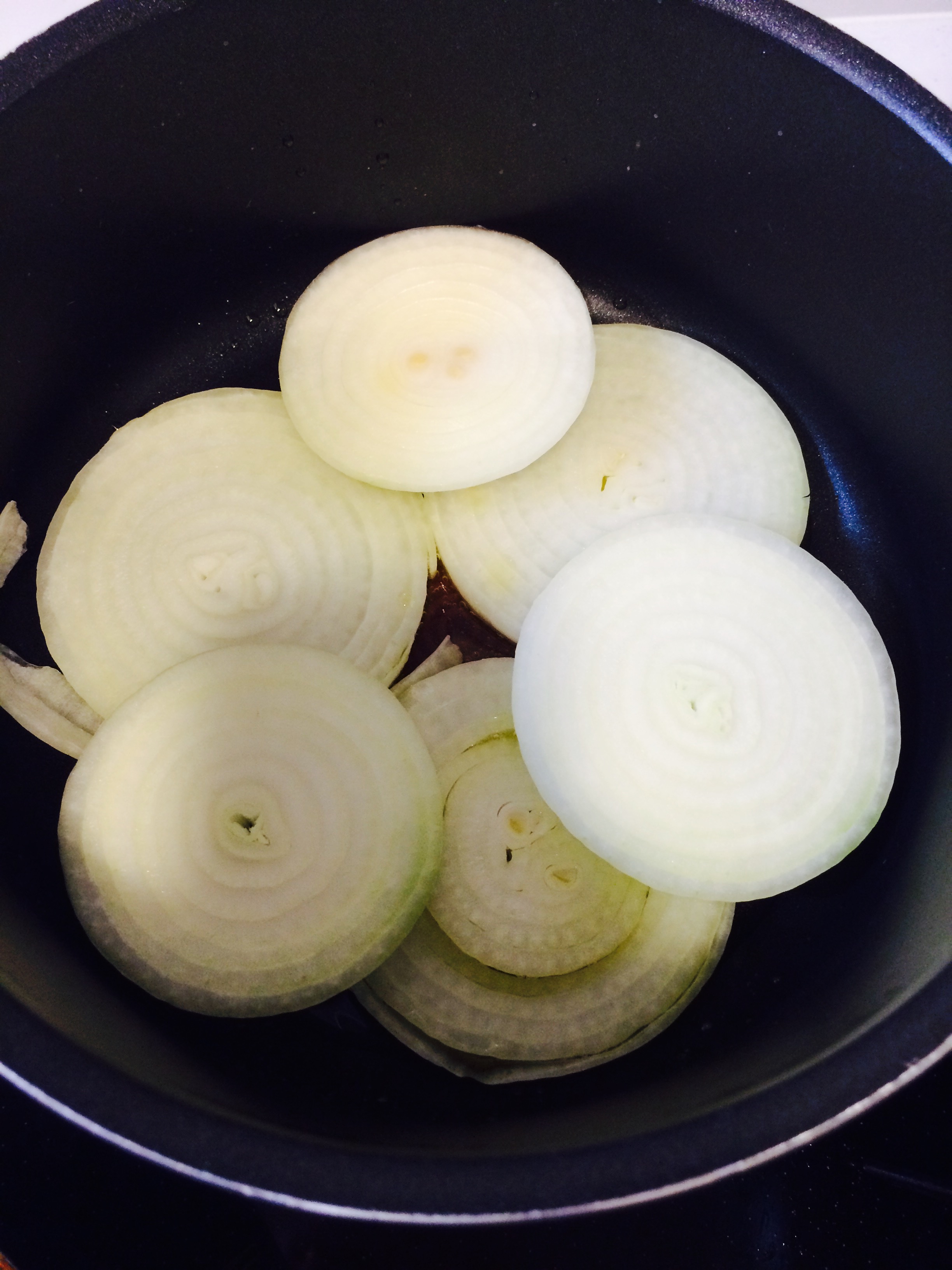 オリーブオイルを入れてフライパンに玉ねぎを入れて炒めます。