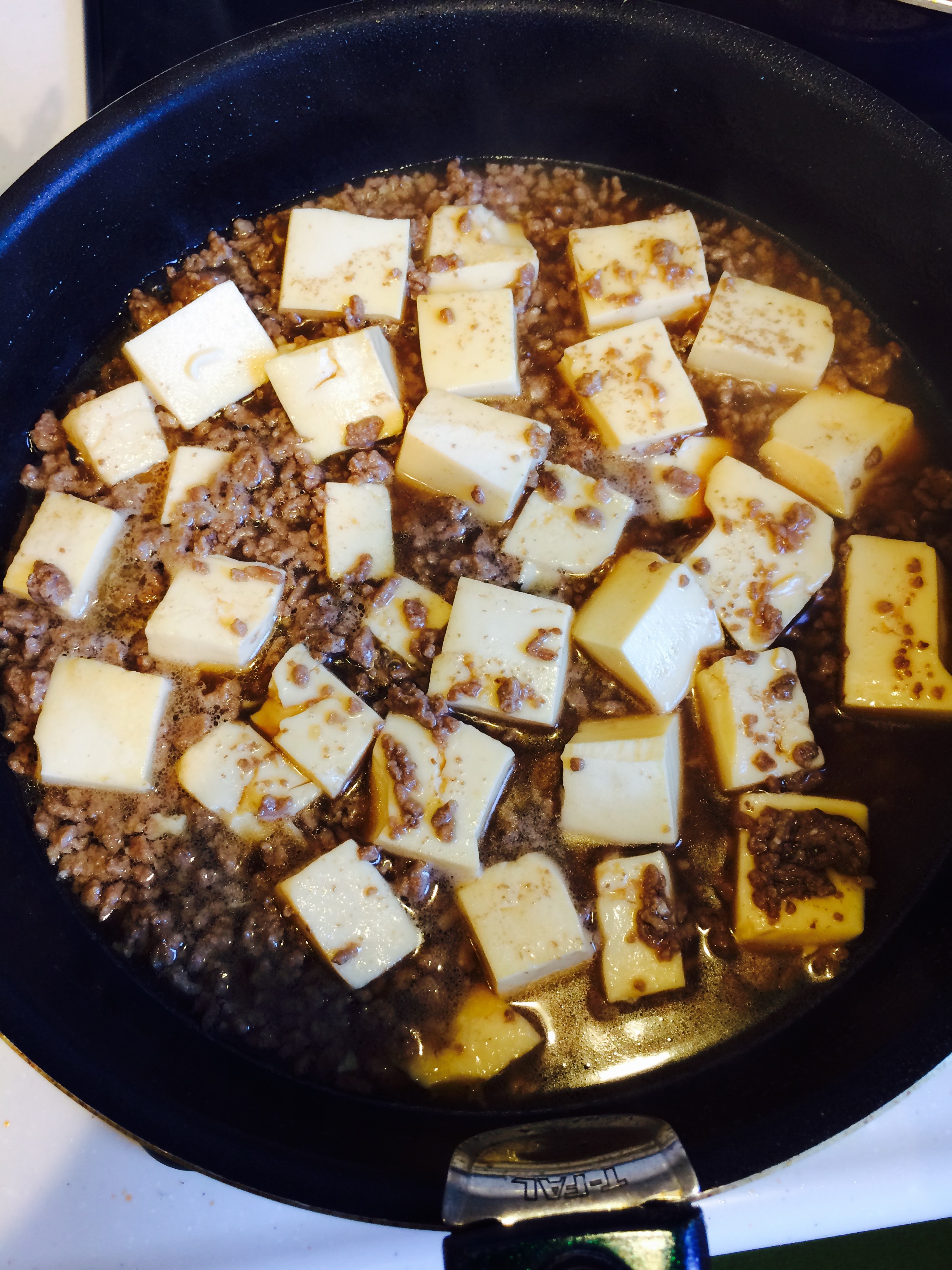 豆腐と○の調味料を入れて5分ほど煮ます。