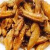 オリーブオイルを入れたフライパンで3cm位にカットしたベーコンを炒めカリカリになってきたら食パンを投入してカリとするまで炒めます