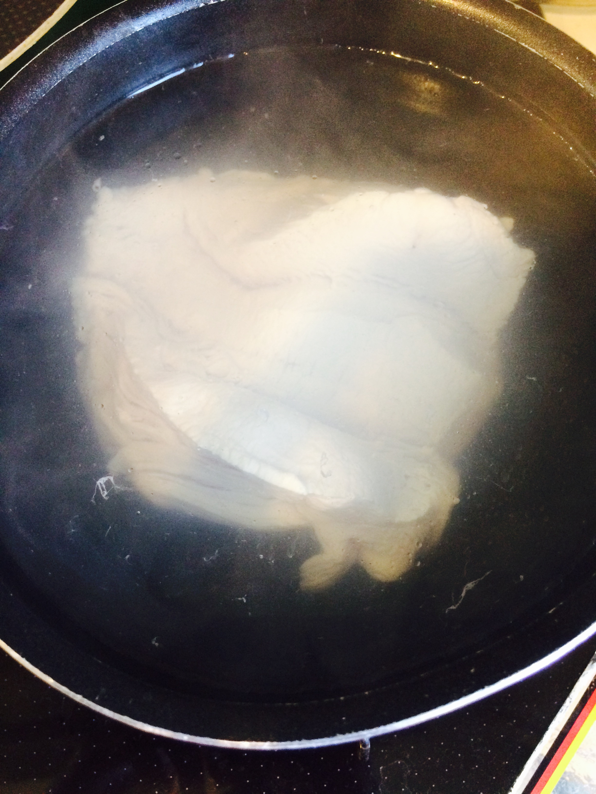 お湯が沸騰したら火を止めて常温に戻した鶏むね肉を入れてフタをし25分放置します。